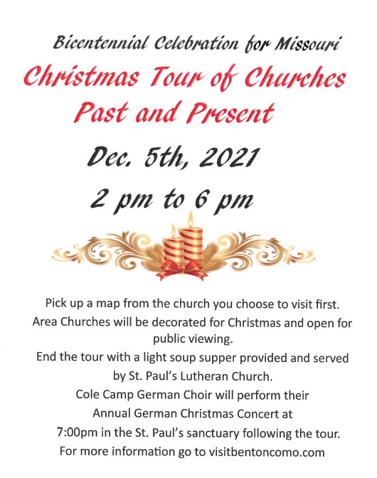 Cole Camp’s Churches Tour and German Christmas Concert is on December 5th.
