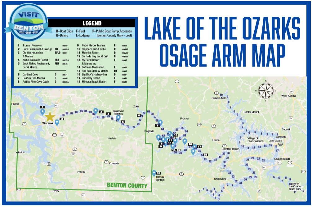 oSAGE ARM MAP WITH RAMPS, DINING, LODGING, FUEL AND SLIPS IN BENTON COUNTY